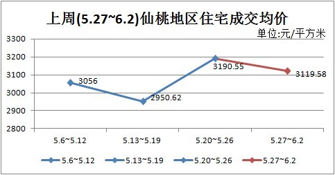 仙桃地区(包含部分乡镇楼盘)的住宅成交均价上周(5.27~6.2)有所下降,均价为3119.58元/平米。