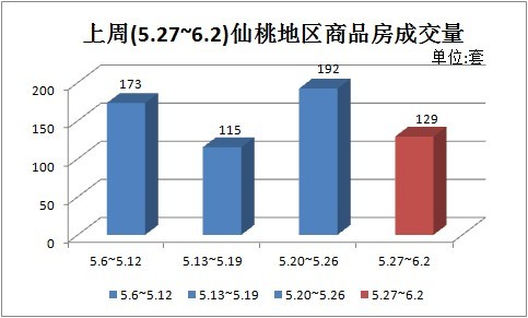 相比5月前几周,上周(5.27~6.2)的销量有所下降,这周销售商品房129套。