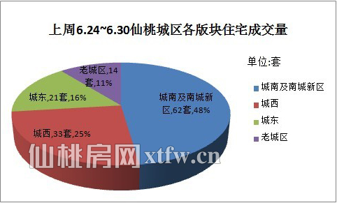 图二:上周(6.24~6.30)仙桃城区各版块成交量(套)
