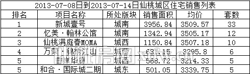 图一:上周(7.8~7.14)仙桃城区住宅销售套数排行榜TOP5