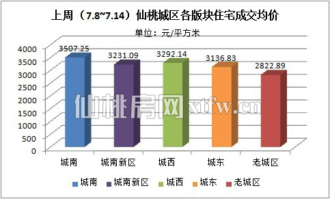 图三:上周(7.8~7.14)仙桃城区各版块住宅成交均价(元/平米)