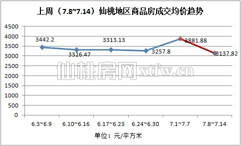 图四:上周(7.8~7.14)仙桃地区住宅成交均价趋势图