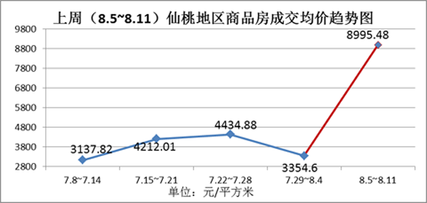 图四:上周(8.5~8.11)仙桃地区住宅成交均价趋势图