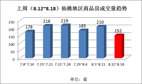 图五:上周(8.12~8.18)仙桃地区商品房成交量趋势(套)