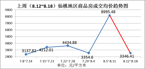 图六:上周(8.12~8.18)仙桃地区商品房成交均价趋势图(元/平米)