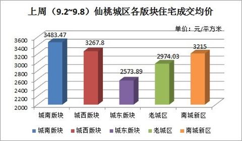 图三:上周(9.2~9.8)仙桃城区各版块住宅成交均价(元/平方米)