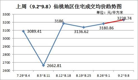 上周(9.2~9.8)仙桃地区住宅成交均价为3228.74元/平米,较前几周略有上涨,但变化幅度不大。