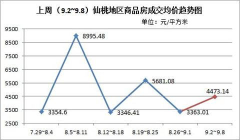 图四:上周(9.2~9.8))仙桃城区住宅成交均价趋势图