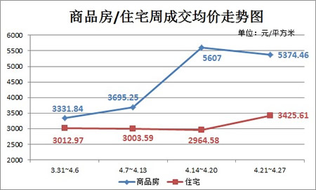 图五:上周(4.21~4.27)商品房/住宅周成交均价走势图