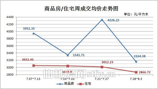 图五:上周(7.28~8.3)商品房/住宅周成交均价走势图