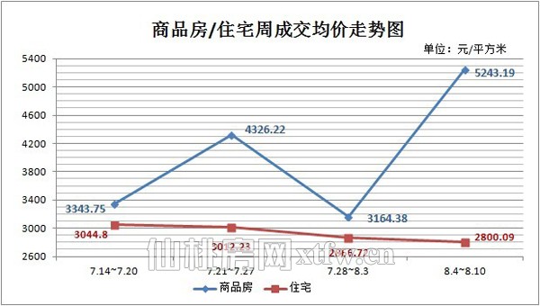 图五:上周(8.4-8.10)商品房/住宅周成交均价走势图