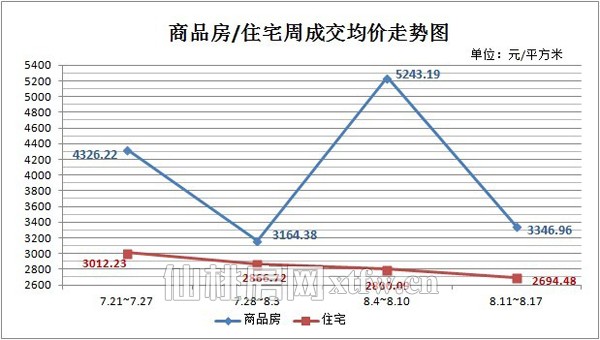 图五:上周(8.11-8.17)商品房/住宅周成交均价走势图