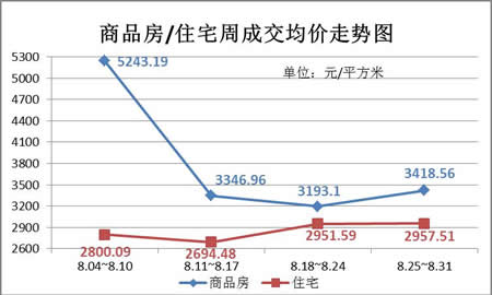 图五:上周(8.25-8.31)商品房/住宅周成交均价走势图