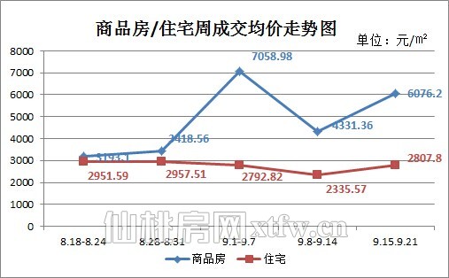 图五:上周(9.15-9.21)商品房/住宅周成交均价走势图