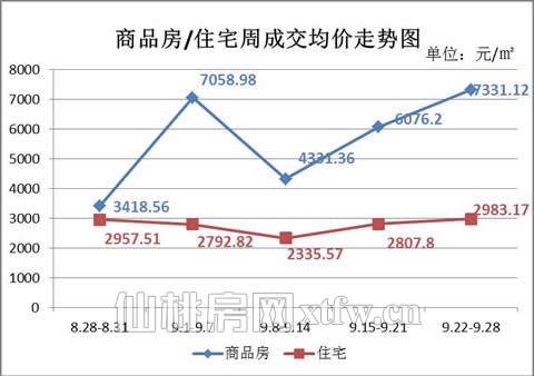 图五:上周(9.22-9.28)商品房/住宅周成交均价走势图