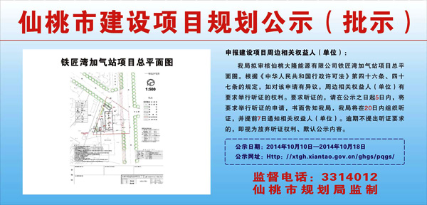 仙桃大隆能源有限公司铁匠湾加气站项目规划批前公示