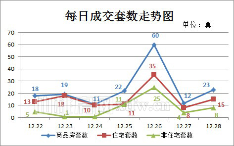 图二:上周(12. 22-12.28)每日成交套数走势图