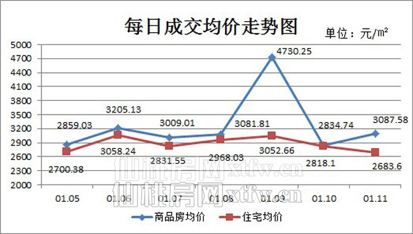图一:上周(01.05-01.11)每日成交均价走势图