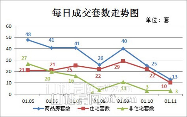图二:上周(01.05-01.11)每日成交套数走势图