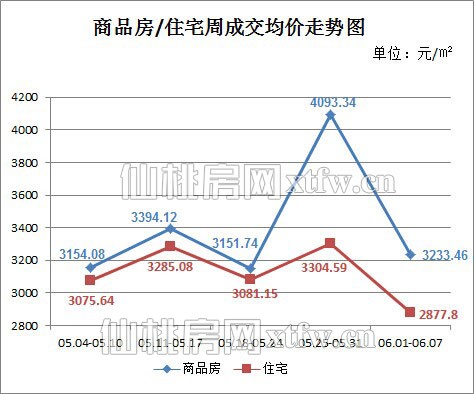 图五:上周(06.01-06.07)商品房/住宅周成交均价走势图