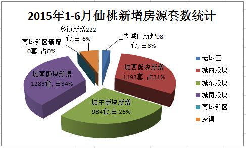 2015年仙桃楼市1-6月各区域新增预售房源情况