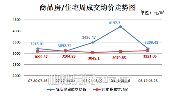 图五:上周(08.17-08.23)商品房/住宅周成交均价走势图