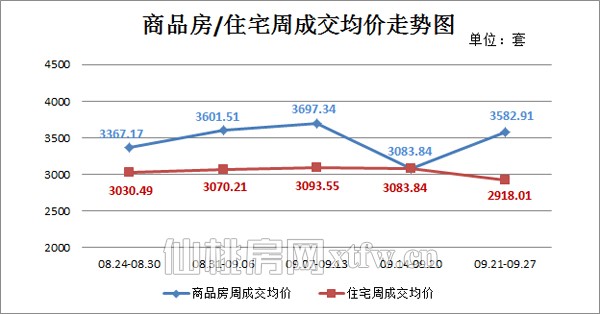 图五:上周(09.21-09.27)商品房/住宅周成交均价走势图
