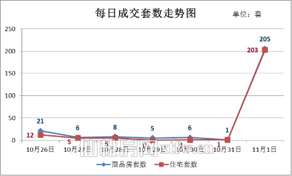 图四:上周(10.26-11.1)商品房周成交量走势图