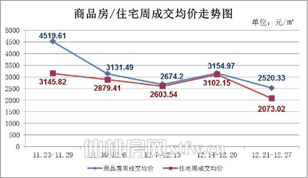 图五:上周(12.21-12.27)商品房/住宅周成交均价走势图