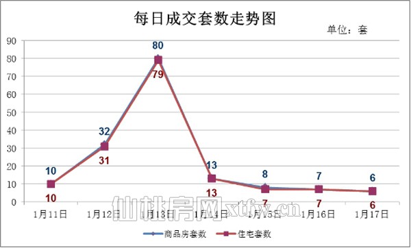 仙桃房网新数据统计:2016年1月11日至2016年1月17日仙桃楼市销售总交易记录为156套,成交面积10575.49㎡,成交金额37782804.47元,均价约3572.68元/㎡。其中住宅成交153套,成交面积为10146.69㎡,成交金额约35210004.47元,成交均价约3470.10元/㎡;非住宅销售3套,成交面积428.8㎡,成交金额约2572800元,成交均价月约5646.62元/㎡。(此数据供参考,请以官方发布数据为准。)
