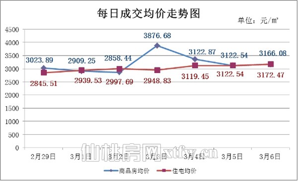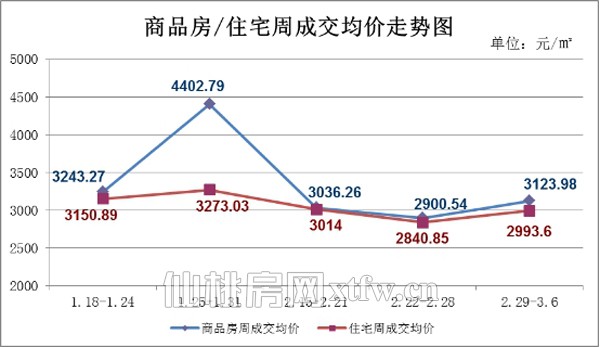 图五:上周(2.29-3.6)商品房/住宅周成交均价走势图