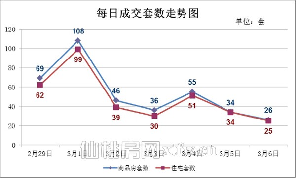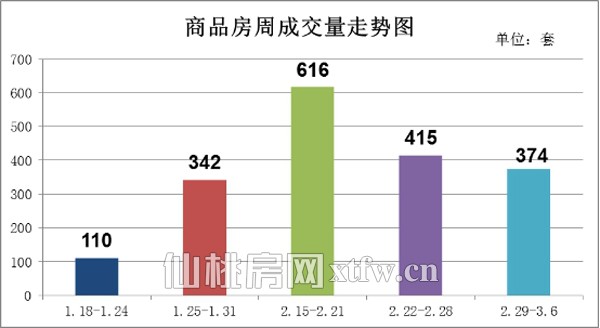 图三:上周(2.29-3.6)住宅周成交量走势图