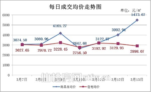 图一:上周(3.7-3.13)每日成交均价走势图