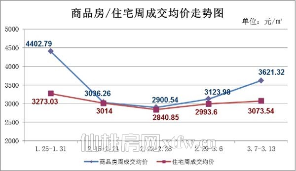 图五:上周(3.7-3.13)商品房/住宅周成交均价走势图