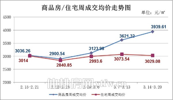 图五:上周(3.14-3.20)商品房/住宅周成交均价走势图
