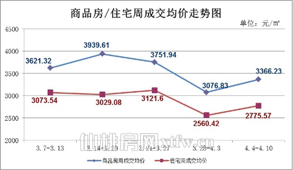 图五:上周(4.4-4.10)商品房/住宅周成交均价走势图