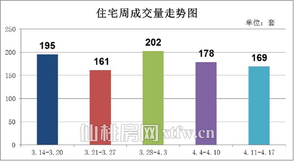 据仙桃房网新数据统计:2016年4月11日至2016年4月17日仙桃楼市销售总交易记录为202套,成交面积24042.45㎡,成交金额86289879.01元,均价约3589.06元/㎡。其中住宅成交169套,成交面积为19764.44㎡,成交金额约63336578.73元,成交均价约3204.57元/㎡;非住宅销售33套,成交面积4278.01㎡,成交金额约22953300.28元,成交均价月约6050.35 元/㎡。(此数据供参考,请以官方发布数据为准。)