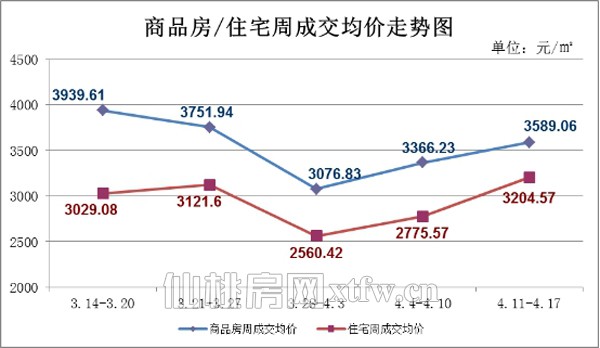 图五:上周(4.11-4.17)商品房/住宅周成交均价走势图