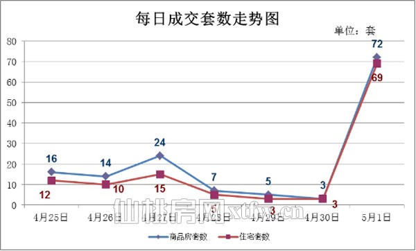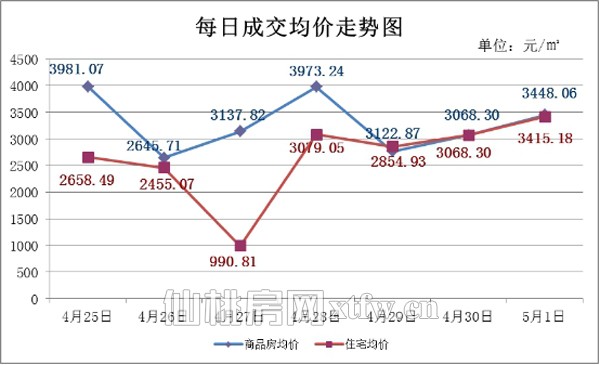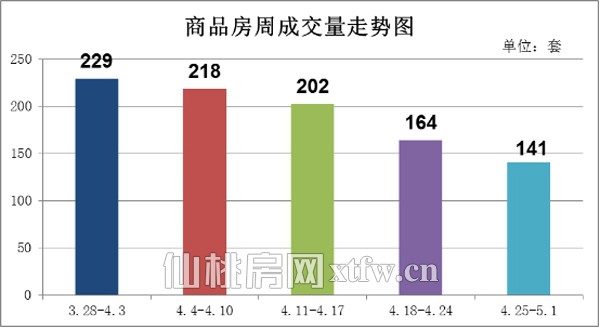 据仙桃房网数据统计:2016年4月25日至2016年5月1日仙桃楼市销售总交易记录为141套,成交面积16961.88㎡,成交金额56975115.81元,均价约3359.01元/㎡。其中住宅成交117套,成交面积为14581㎡,成交金额约42778633.64元,成交均价约2933.86元/㎡;非住宅销售24套,成交面积2380.88㎡,成交金额约14196482.17元,成交均价月约5044.54元/㎡。(此数据供参考,请以官方发布数据为准。)