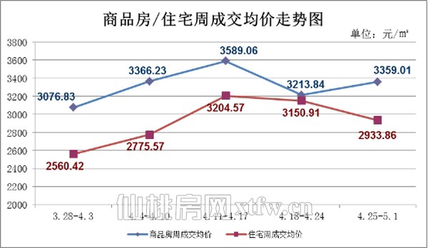 图五:上周(4.25-5.1)商品房/住宅周成交均价走势图