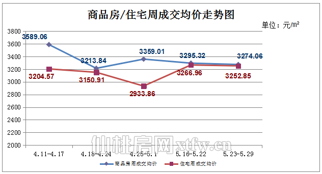 图五:上周(5.23-5.29)商品房/住宅周成交均价走势图