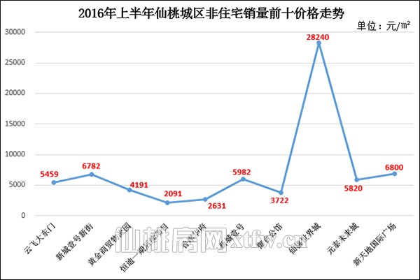 2016年上半年仙桃城区非住宅销量前十价格走势