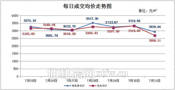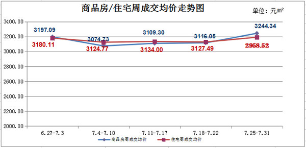 图五:上周(7.25-7.31)商品房/住宅周成交均价走势