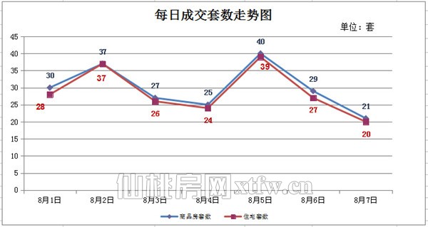仙桃房网数据统计:2016年8月1日至2016年8月7日仙桃楼市销售总交易记录为188套,成交面积21172.27㎡,成交金额64874223.47元,均价约3052.59元/㎡。其中住宅成交181套,成交面积为20691.00㎡,成交金额约63052997.05元,成交均价约3034.56元/㎡;非住宅销售7套,成交面积3174.04㎡,成交金额约991226.30元,成交均价月约3409.63元/㎡。(此数据供参考,请以官方发布数据为准。)