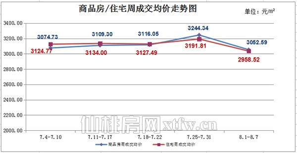图五:上周(8.1-8.7)商品房/住宅周成交均价走势