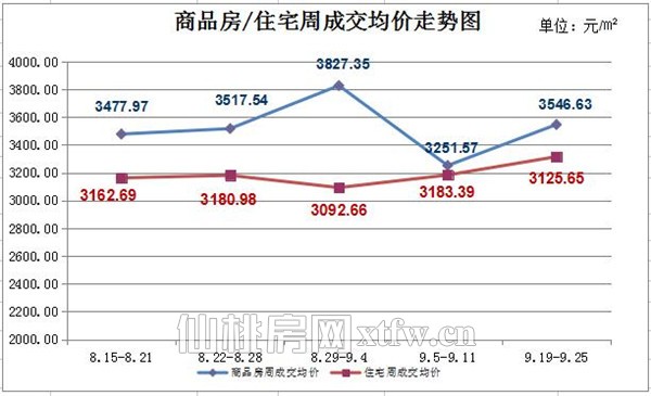 图五:上周(9.17-9.25)商品房/住宅周成交均价走势