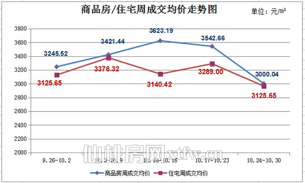 图五:上周(10.24-10.30)商品房/住宅周成交均价走势