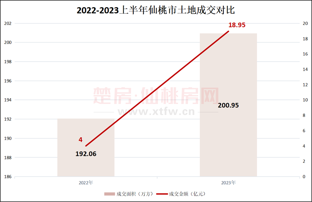 2023上半年仙桃成交117宗土地,成交金额18.95亿。