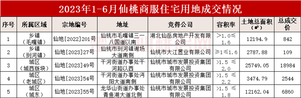 2023上半年仙桃土地市场“成绩单”新鲜出炉!