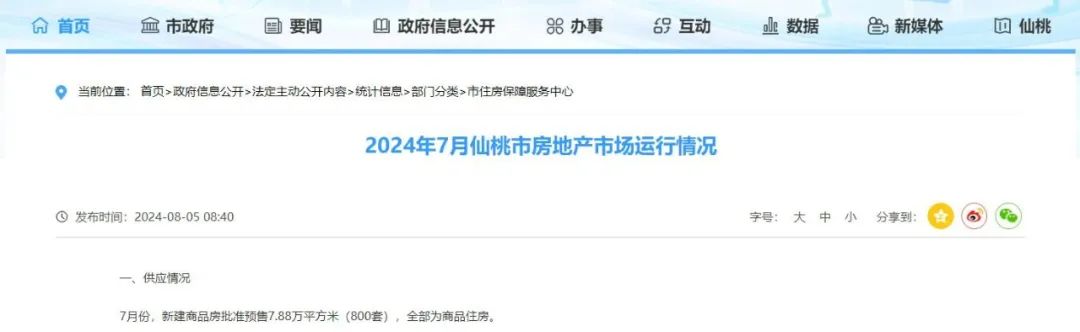 7月份新建商品房销售8.48万平方米(717套),同比增长96.8%;其中,新建商品住房销售8.14万平方米(672套),同比增长99.5%,商品住房成交均价5265元/平方米。